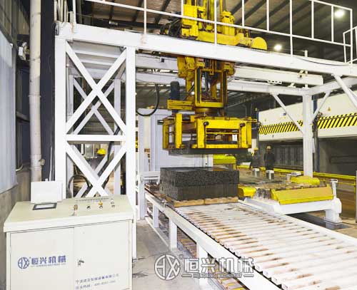 陶粒泡沫混凝土砌块运送到夹砖机械手下进行码垛